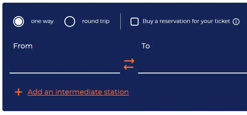 FIP 50 Tickets can be issued on the train but are subject to a special fee (except if the passenger boards at a station without ticket sales). Passengers must board through the front door of the train (in the direction of travel) and buy the ticket from the train staff immediately after boarding.